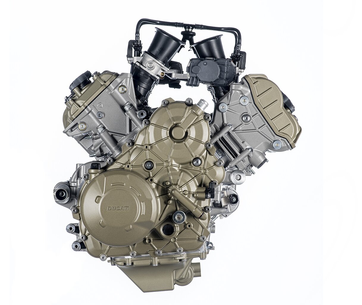 (こちらムルティに搭載されるグランツーリスモエンジン。パニガーレのデスモセディチストラダーレからデスモ取っ払ってます。賛否はあるようですが、タフさが要求されるアドベンのエンジンに繊細なデスモはどう考えてもミスマッチですからこれが正解。デスモ外したおかげで随分軽いんですよね。)