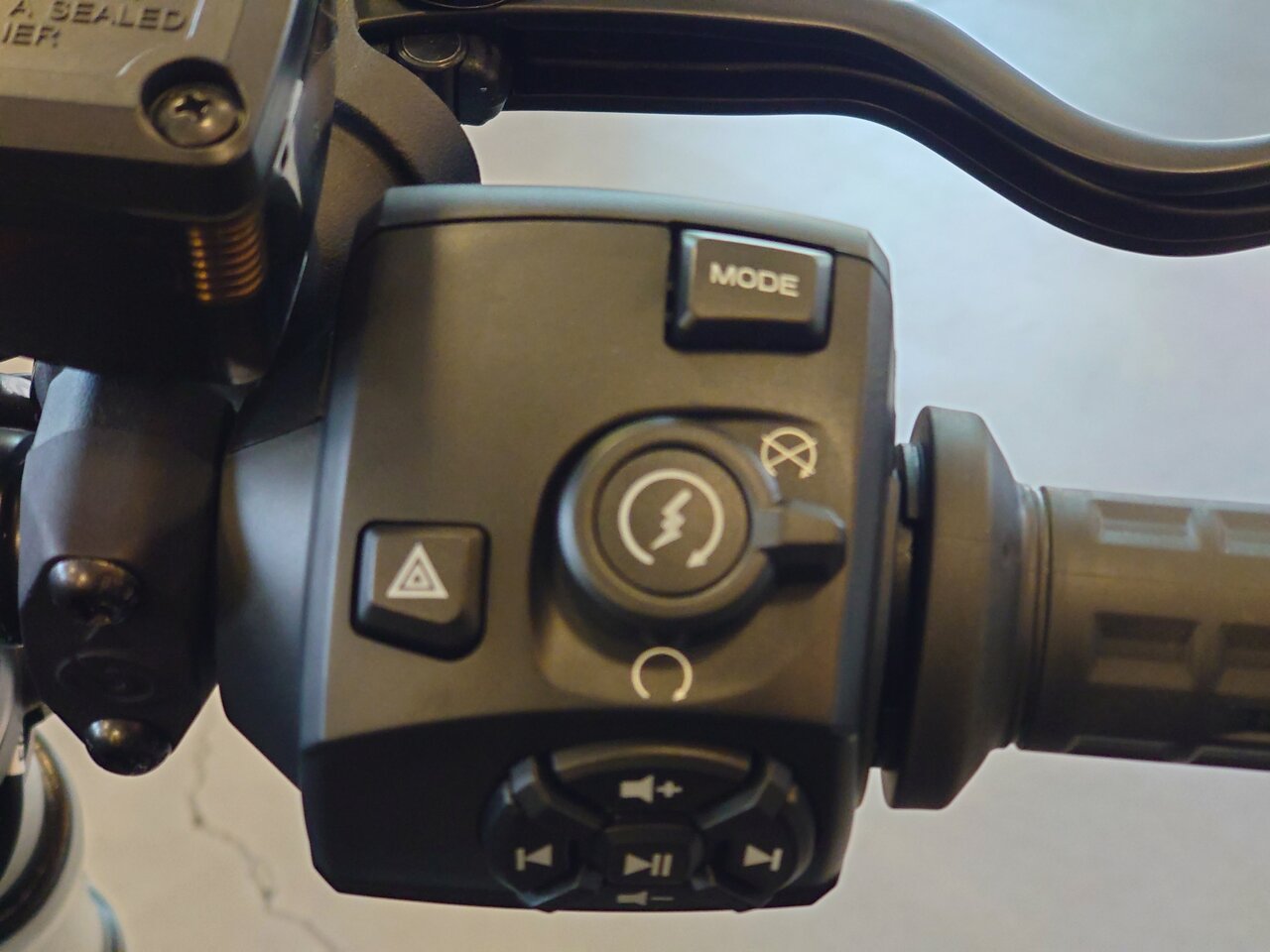 (こちらがナイトスターのスイッチボックス。実にシンプル。ハザード下のスイッチには本来なんらかの役割が与えられるはずですが、ノーマル状態ではそこが埋められてないのが悲しい。そういうところの詰めの甘さも下位モデル感を出してしまってる一因ですね。)