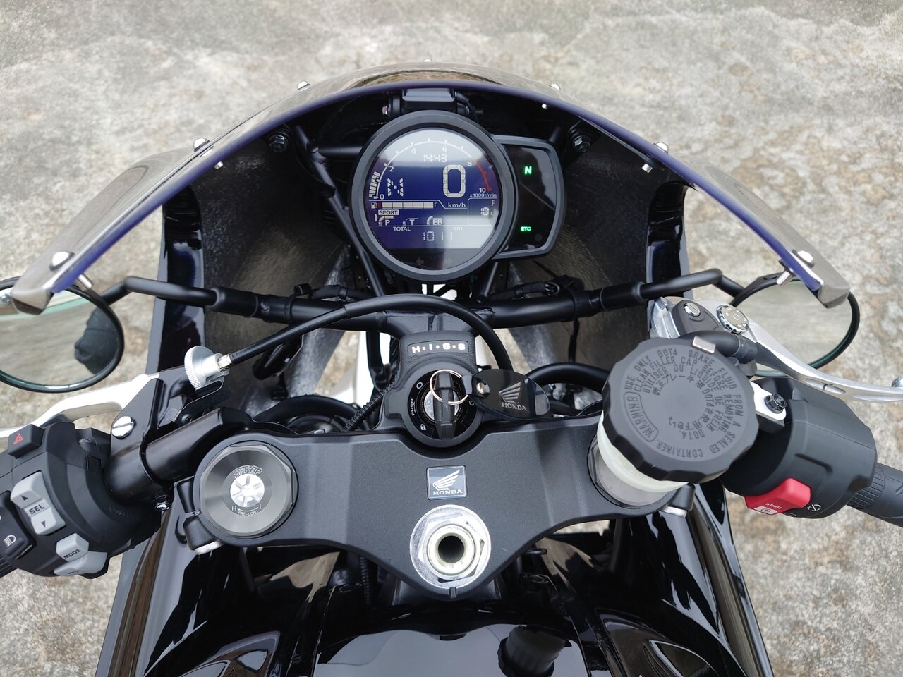 ちなみにこのロケットカウル、一切分割がされてないから、コカして割るとフロント周りまるっと交換で修理費30万円オーバーらしいです。私は当初「ホンダのことだから、変なところに飛び出たミラーがカウルを守ってくれるはず・・」なんて甘いこと考えていたんですが、納車時のドリーム店長の一言でその期待はあえなく粉砕されました。
