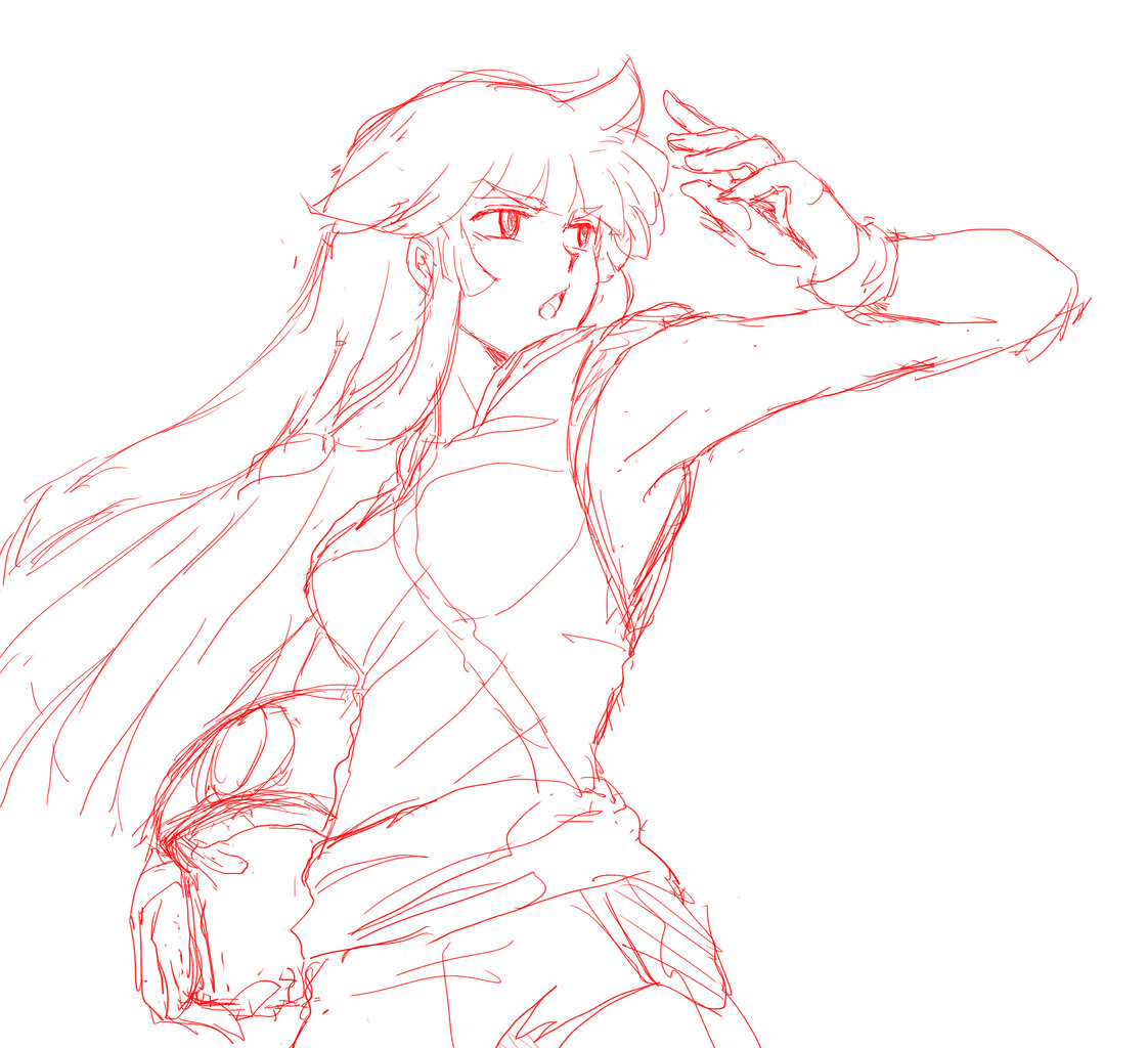 (まずはラフな下描きから。ちょっと前から下絵はわかりやすいよう赤色にしてます。)