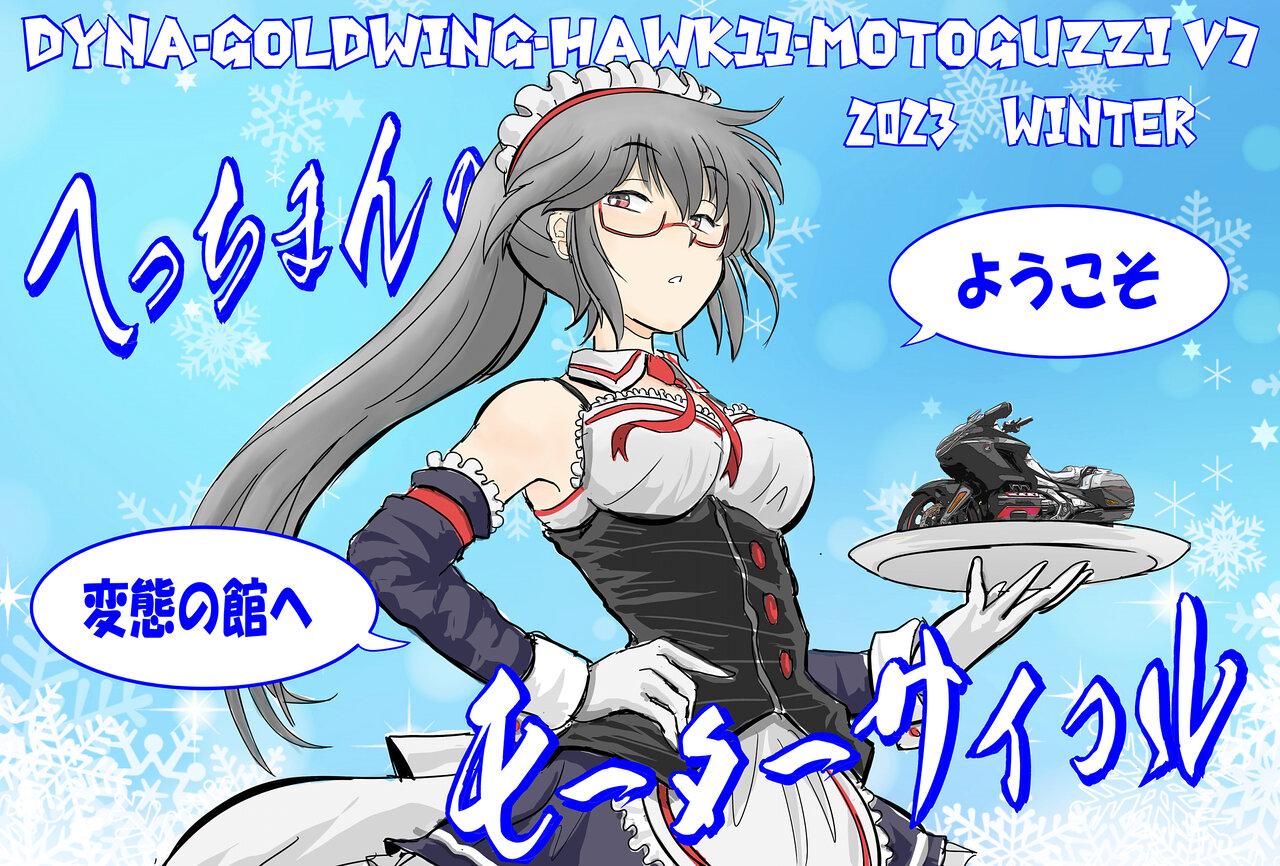 12月15日に冬のヘッダーに変更しました。登場するのは私の定番冬バイクのゴールドウィングです。来年はゴールドウィング生誕50周年記念ということで、下の方にしれっと歴代ゴールドウィングと並んで私の愛車、F6Bときんつば嬢が登場してます。