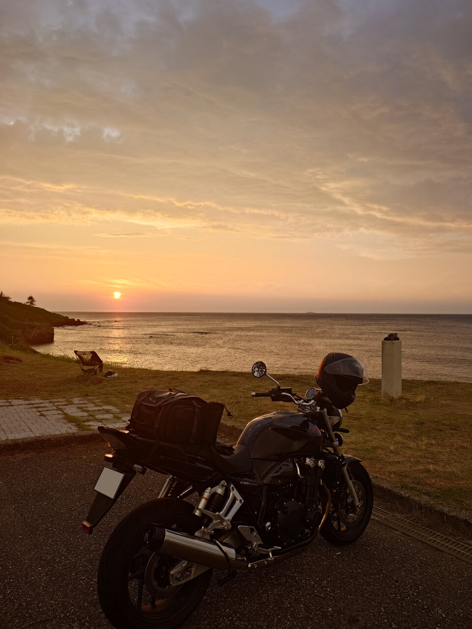(CB1300SFで夕日珈琲ツーリング。今年は天気が良かったので、夕日を肴にコーヒーを飲むことが多かったです。)