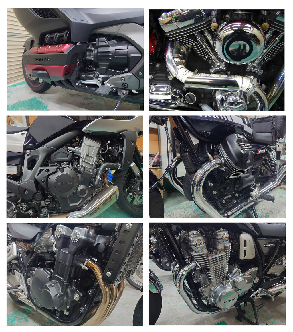 私の所有バイクって気筒数で分けると「2気筒3台、4気筒2台、6気筒1台」。空冷か水冷で分けると、「空冷3台、水冷3台」。カムで分けると「OHV2台、OHC2台、DOHC2台」。エンジンの配置方式なら「縦置2台、通常4台」です。つまり、エンジンについては、6台の機構が全てバラバラってことになります。
