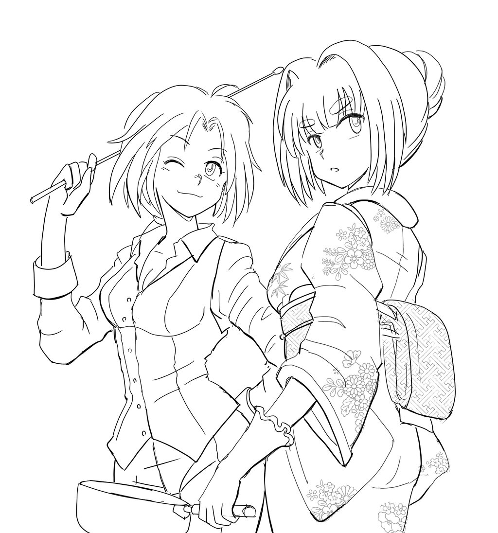 (ここ最近の塗り方はアニメ塗りで安定。水彩塗りとか、グラデ塗りも試しましたが、結局はアニメ塗りに落ち着いた。白黒トーンでやってることをカラーにするだけだからやりやすいし、なんだかんだいって一番愛着があるんですよね。)