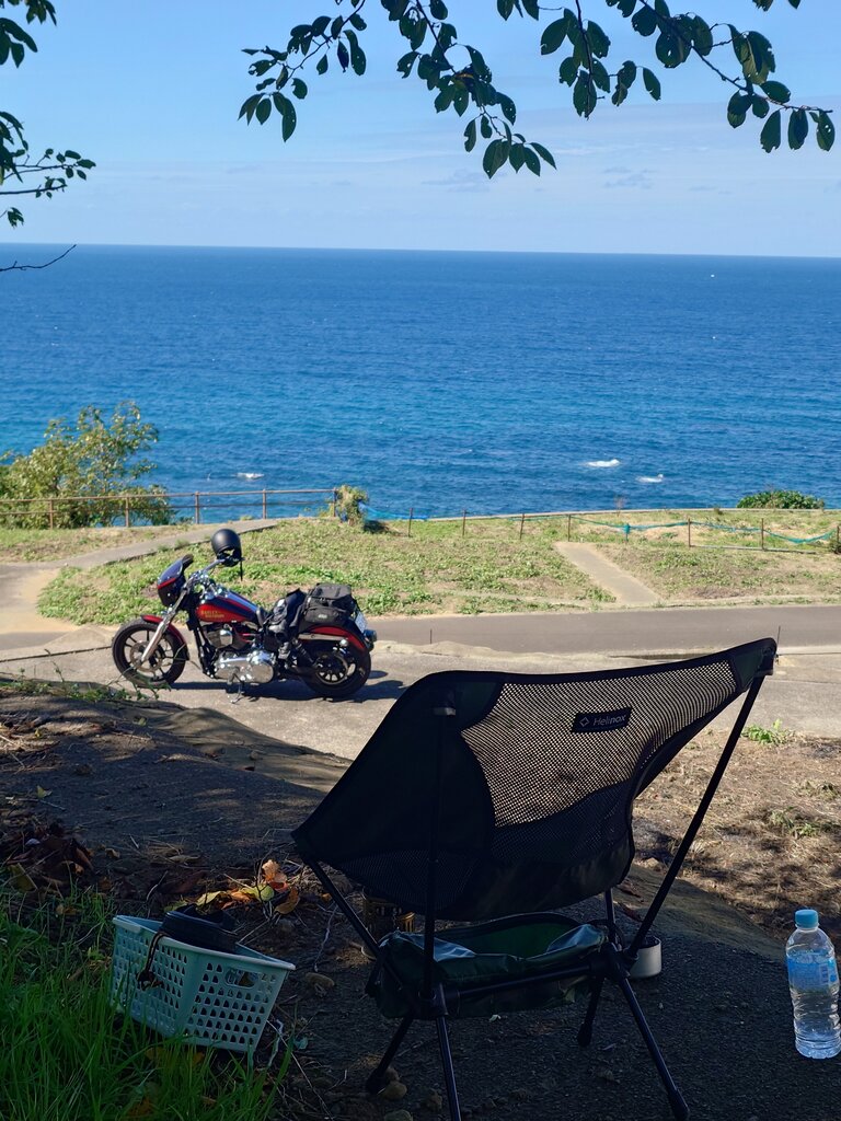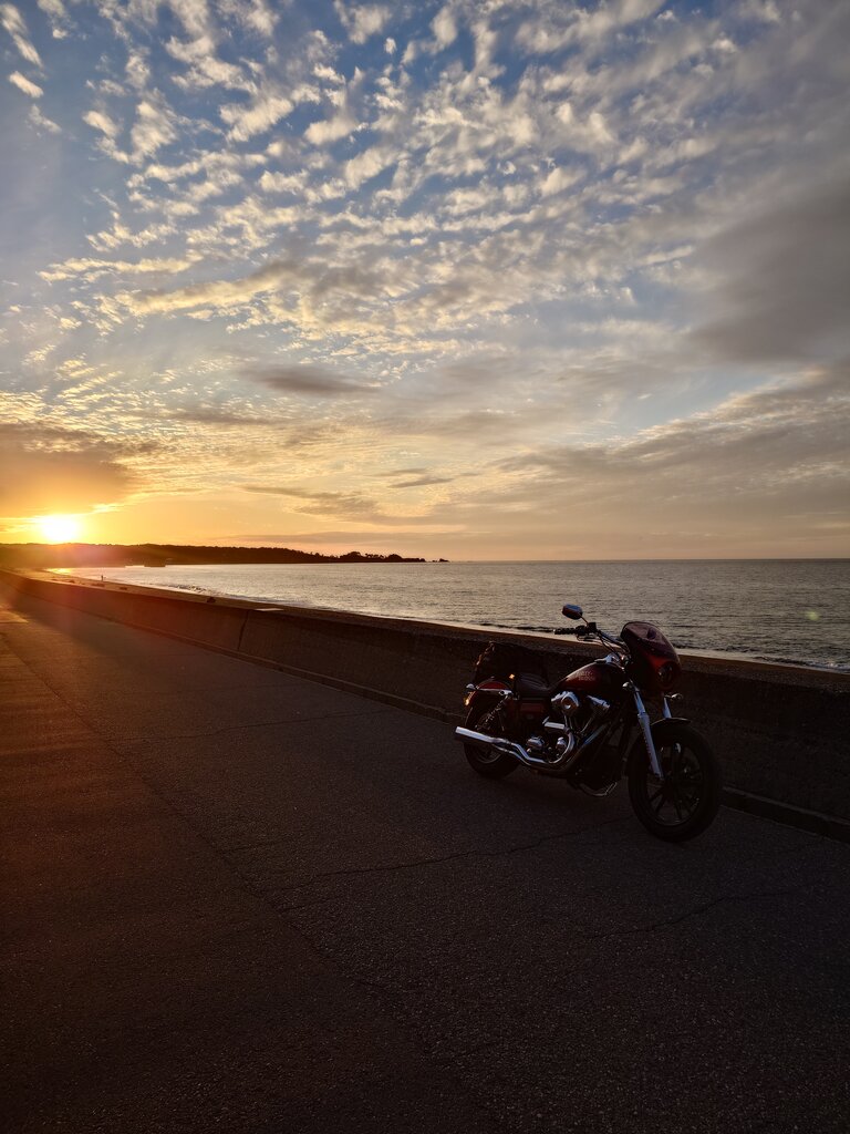 (エンジンマウント交換で復活したダイナで日本海を見ながらぼーっと一服。ハーレーはそんな風景に一番しっくりくるバイクです。)