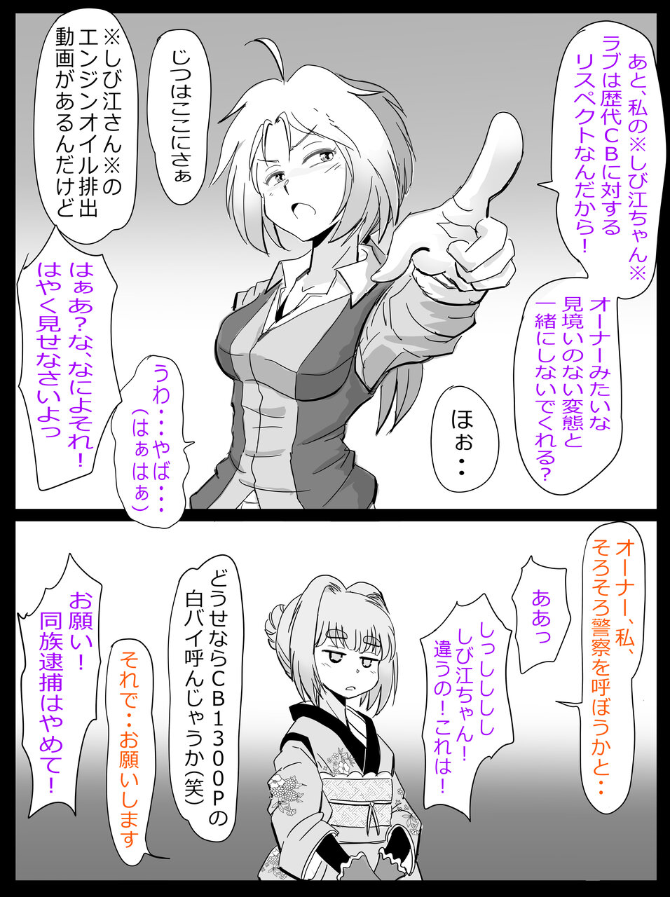 で、ラストの漫画にこれまた凄いオチが(笑)うーん・・・・・オイル排出画像とは😅💦しび江さんとはいえ先日大腸検査で自分が排出させられただけにちょっと抵抗が(笑)💦確かに好きになっちゃうと何でも受け入れられちゃいますよね、ここまで来るとちょっとヤバいですが、同族逮捕が駄目なら、「シン・官憲の白い悪魔」NT1100Pでお迎えですね〜😅💦