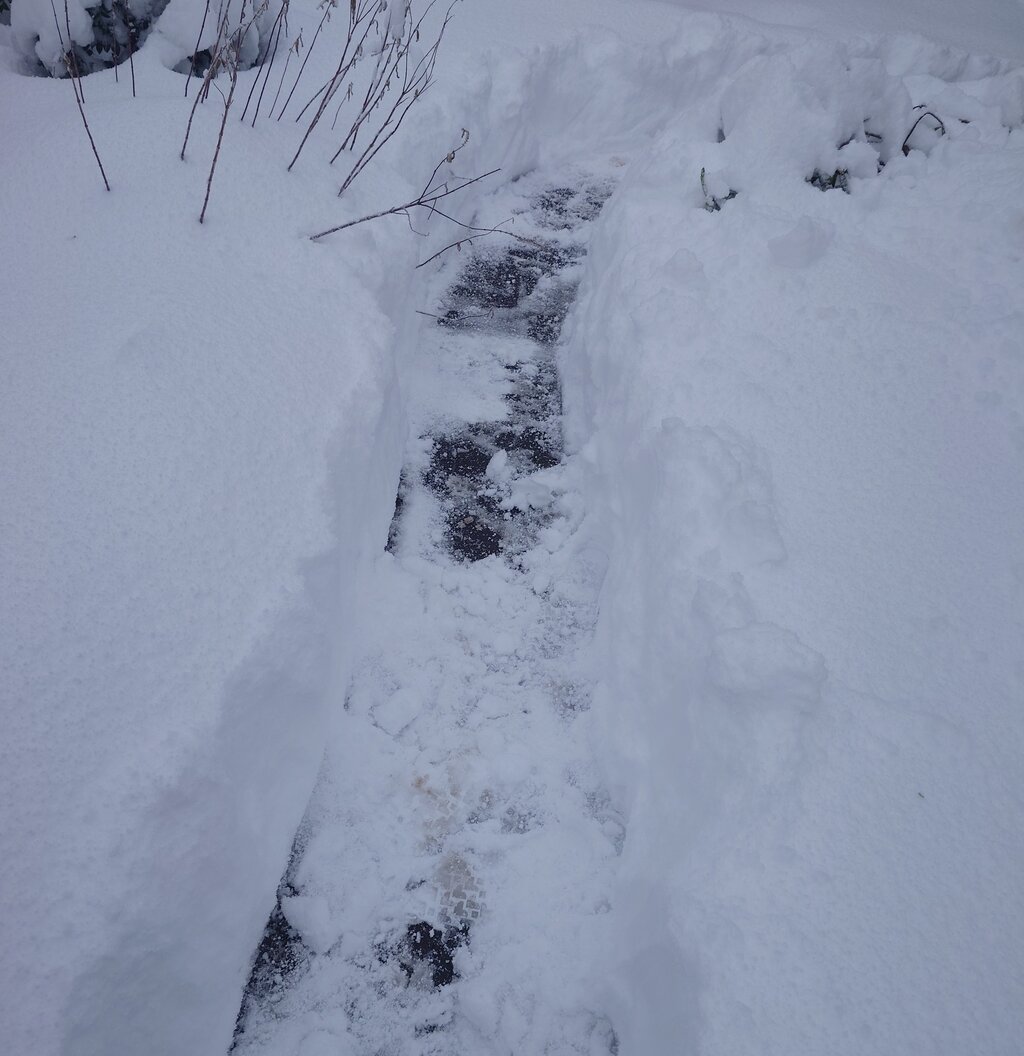 (早朝の自宅玄関前。前日まではまったく雪がなかったのにぃぃいい!!この時点で35㎝くらいは積もってましたかねぇ・・。)