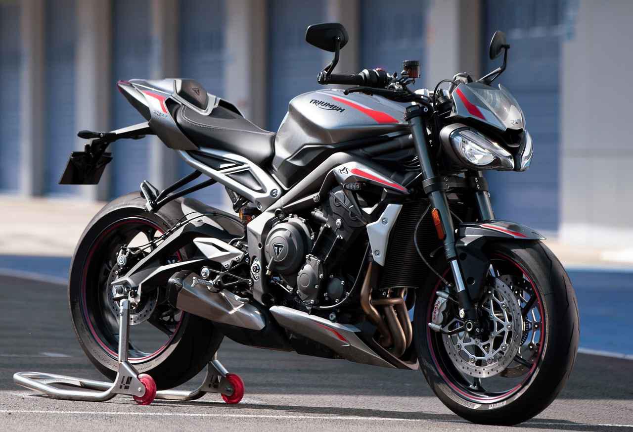 でも今回トライアンフが選択したカラーリングによって、私のネガティブ要素は土台から爆散し、脳髄の奥まで焼かれる結果になってしまったんです。見て下さいよ。この細身マッチョのシルバーボディに赤の差し色、細部のトンガリ感、でこのツリ目ですよ!!